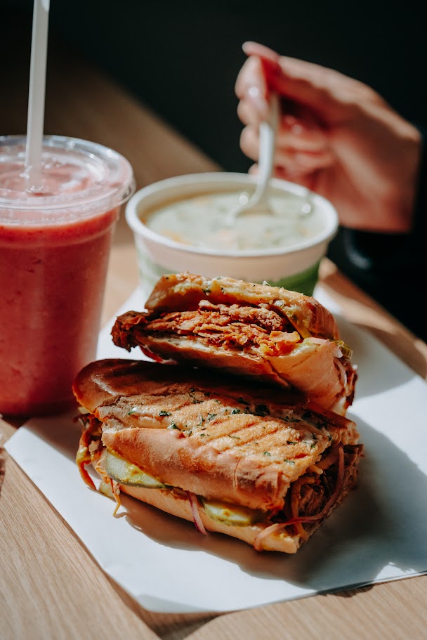 Beyond soups, the sandwiches here are equally impressive. Options like the Cuban Sandwich with BBQ Chicken offers a satisfying crunch and robust flavors that make it a standout, especially for those seeking something a bit more adventurous. Each small sandwich—such as the PK Style Egg Salad or the vegan Pulled Jack— are priced affordably, allowing you to mix and match your favorites without breaking the bank. With prices ranging from CA$4.60 for small sandwiches to delectable combos like Soup & Large Sandwich for just CA$10.99, it’s a satisfying meal that won’t stretch your budget.